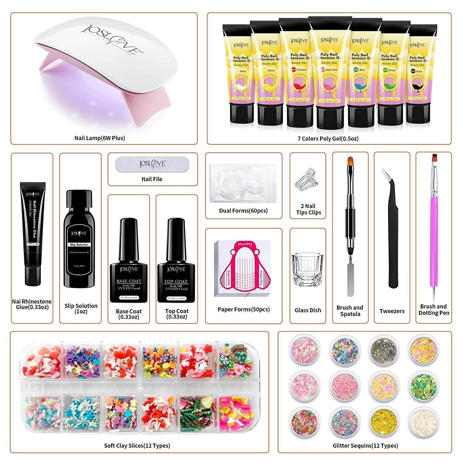 Joslove Poly Nail Gel Kit With Uv Light Starter Kits Acrylic Nail Poly Gel Extension Nail Art Soft Clay Polymer Slices All In One Kit P014 D Vitality